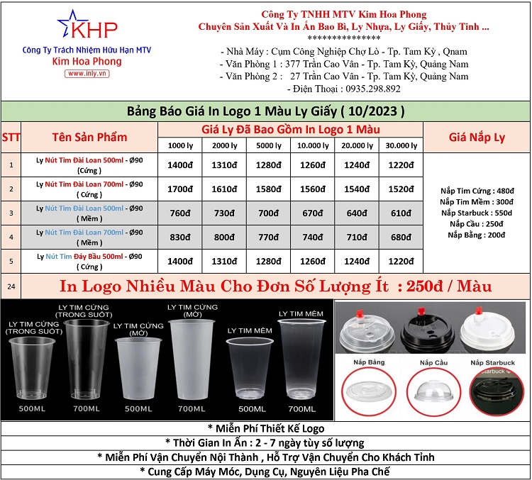 Bảng Báo Giá Ly Nút Tim Đài Loan